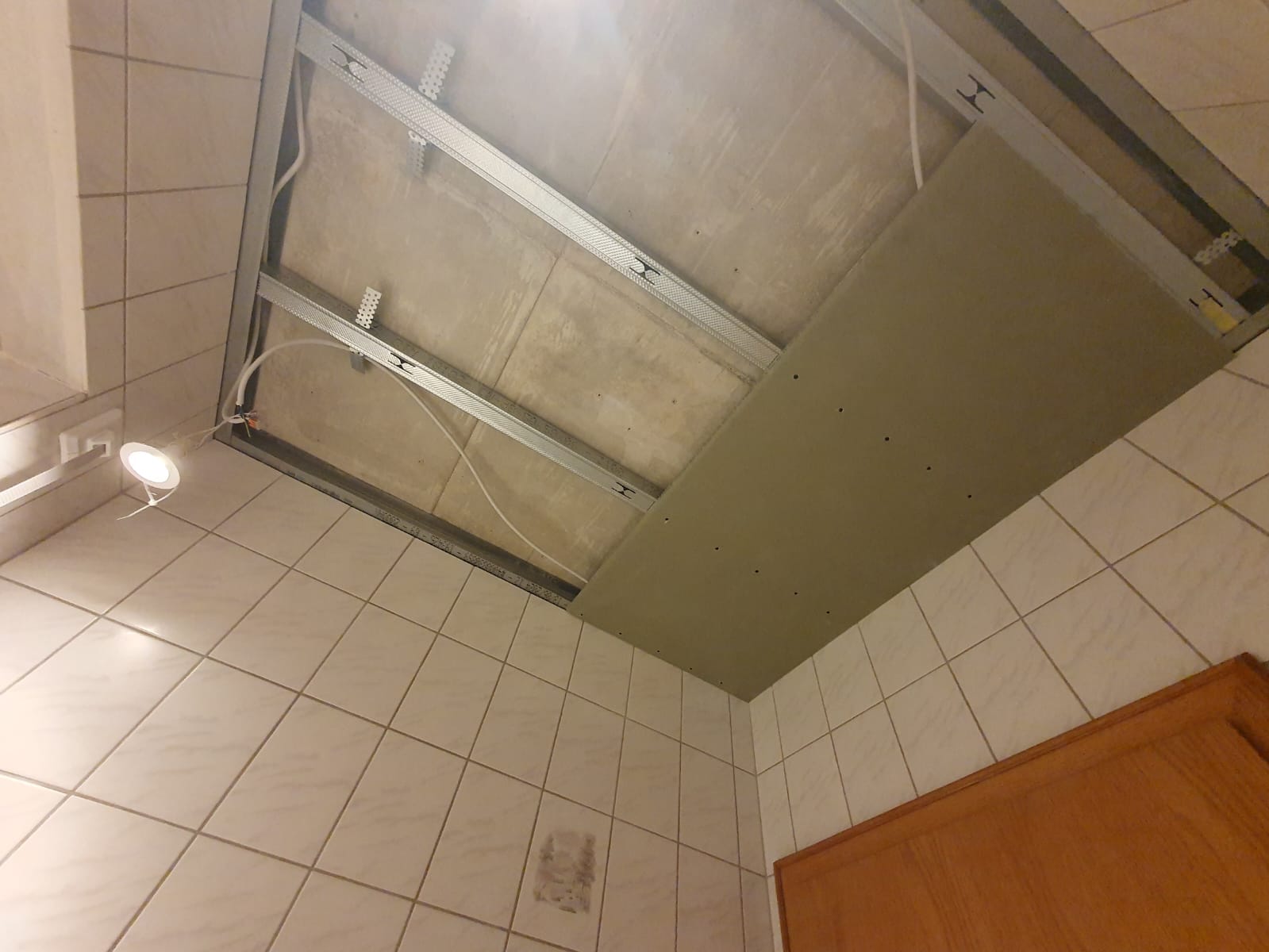 - Die Kanten zur Wand hin müssen einen 90° Winkel haben. Die Gipskartonplatten sollten daher exakt passend zugeschnitten werden.