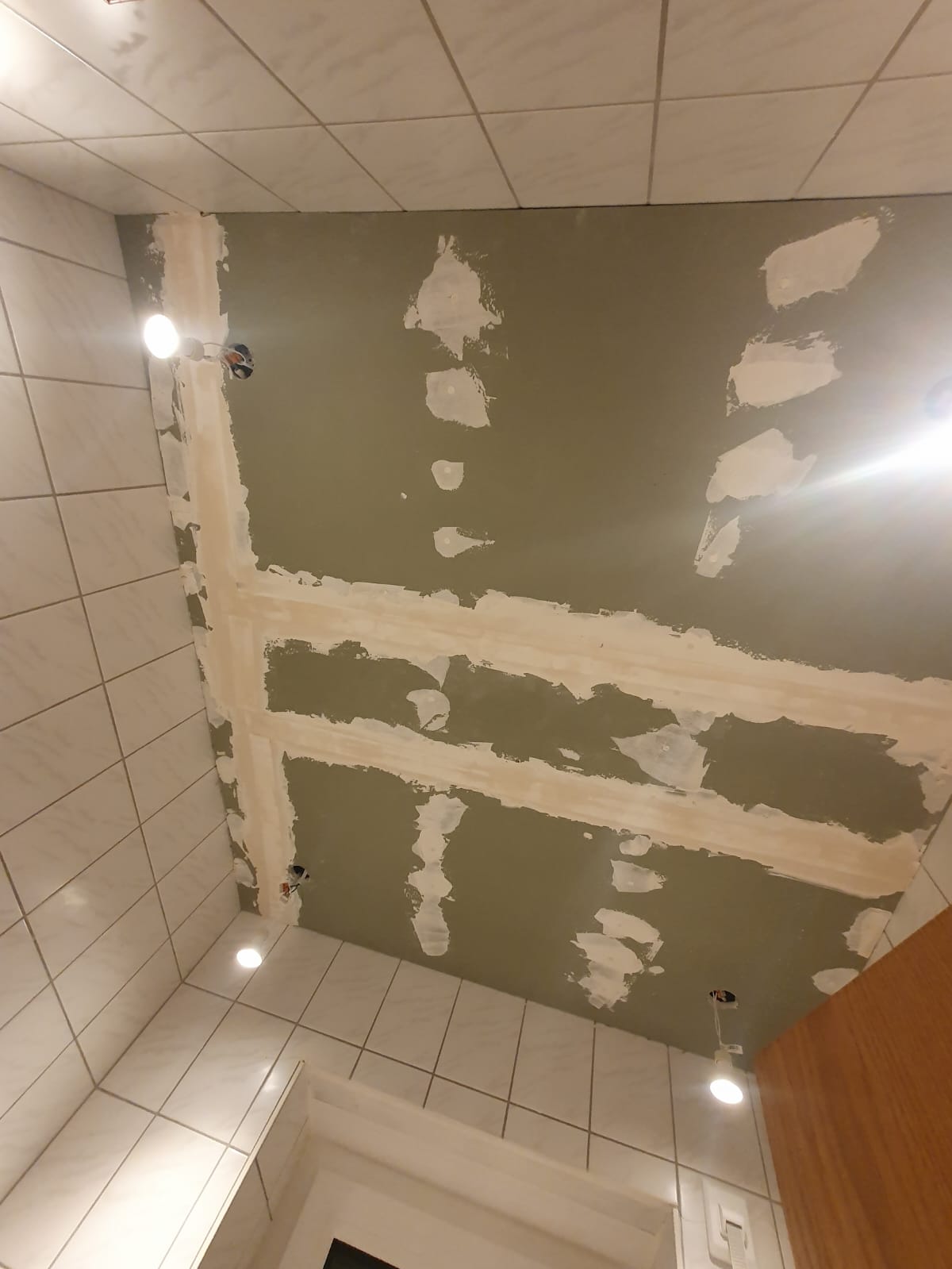 Die Q1-Spachtelung ist die Grundbehandlung der Fugen und Schraubenlöcher. Hierbei werden alle Fugen mit Spachtelmasse gefüllt und mit Fugendeckband armiert, um Risse zu vermeiden. Diese Qualitätsstufe ist für Bereiche ausreichend, die später gefliest oder mit grobstrukturierten Tapeten beklebt werden.