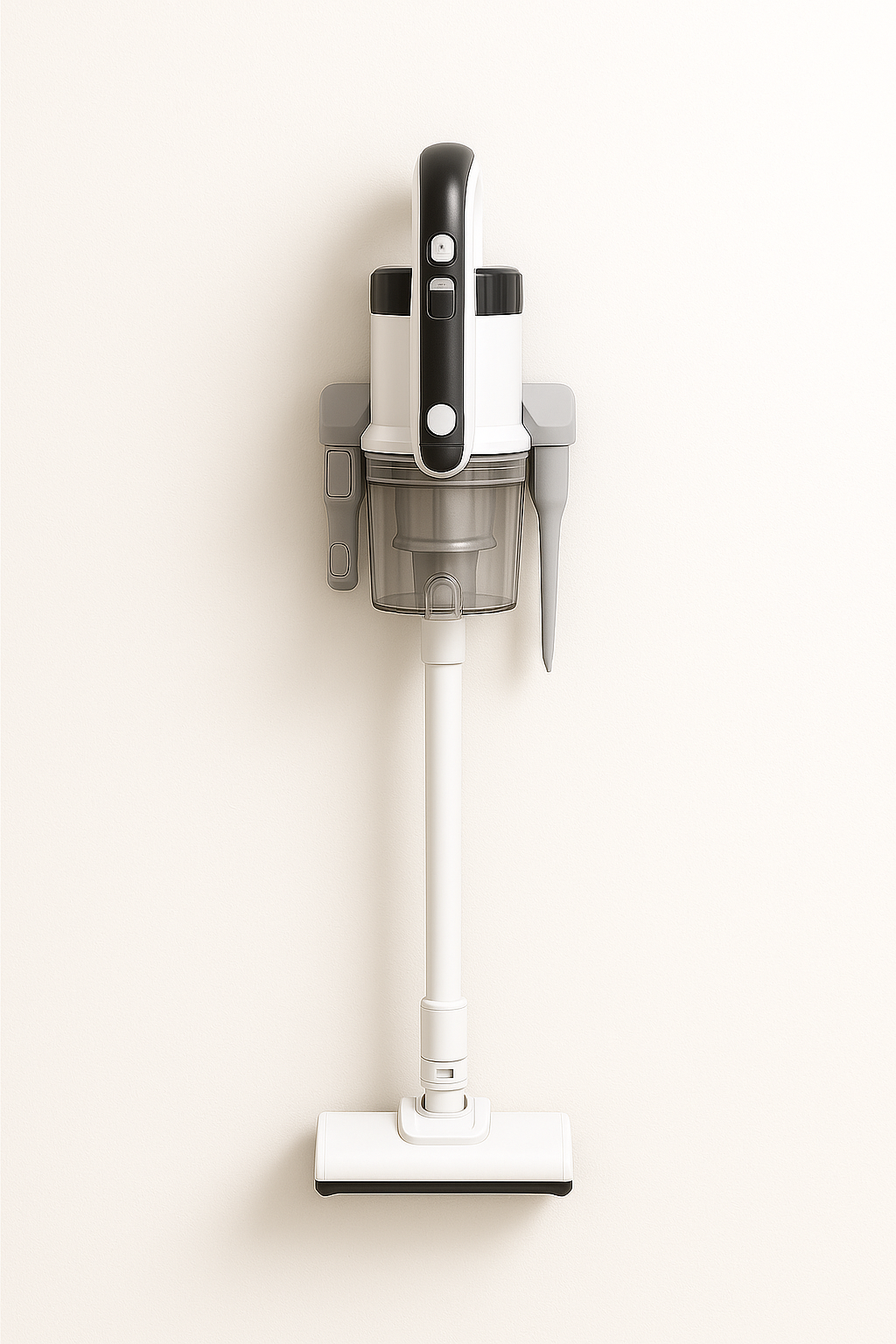 - Der Handstaubsager ist an der Wand montiert. Er hängt in der Ladestation und man kann ihn mit einem Handgriff leicht entnehmen.